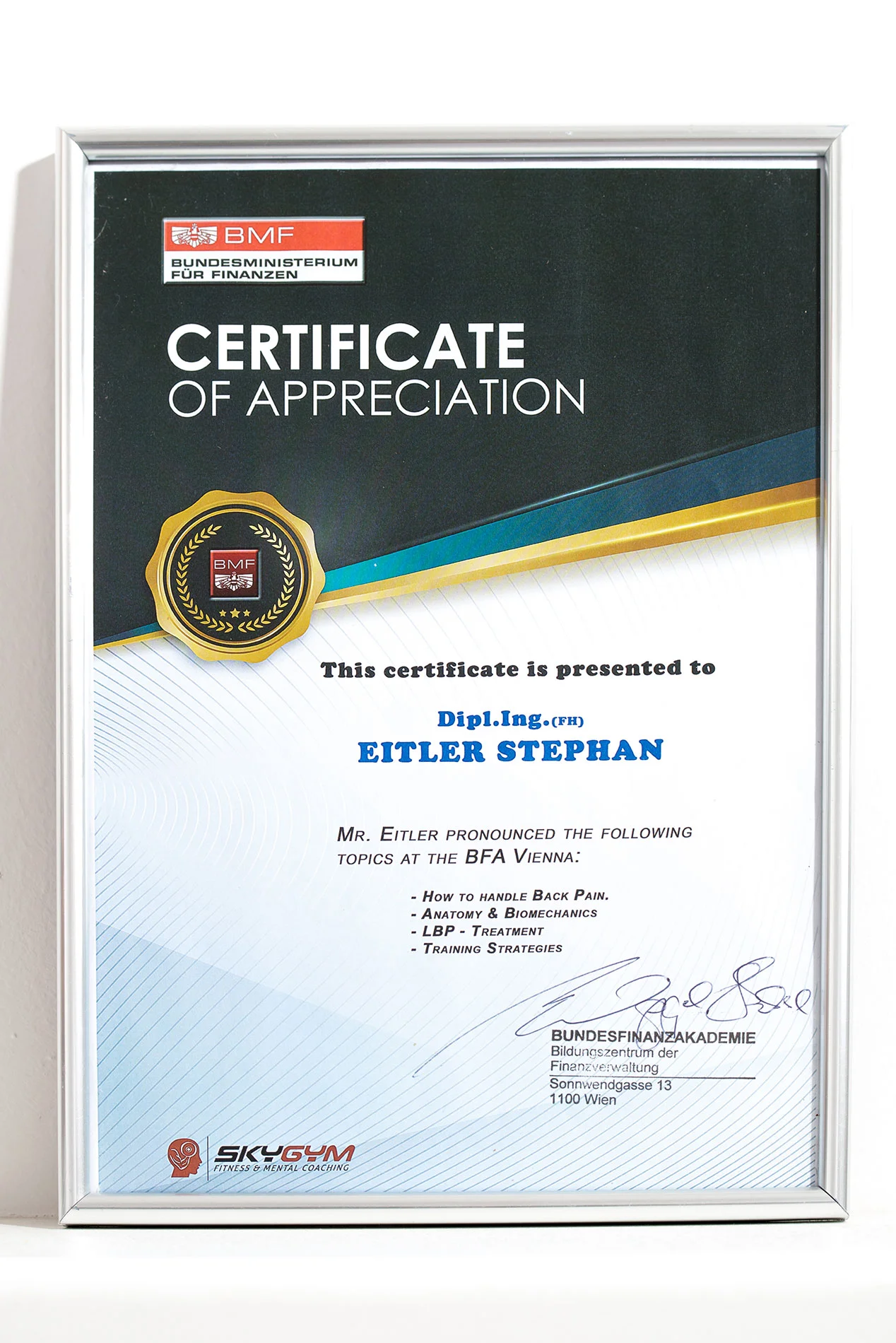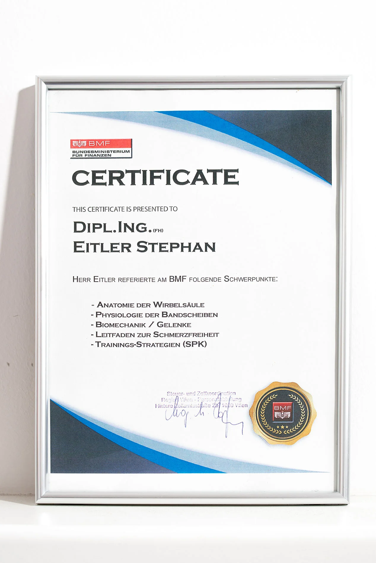 Nachdem ich zuvor an der Bundesfinanzakademie (BFA) referierte, erhielt ich einen Anruf vom Bundesministerium für Finanzen (BMF). Man bat mich auch dort ein Seminar über die Wirbelsäule abzuhalten. Schwerpunkte waren: Anatomie und Physiologie der Wirbelsäule. Rückenschmerzen. Rückenprobleme.